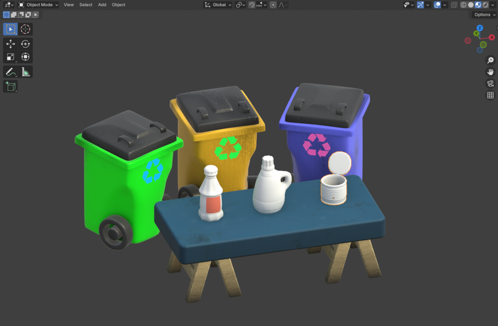 - Animation: Make objects move using key-frames in the Timeline and the Graph Editor.
